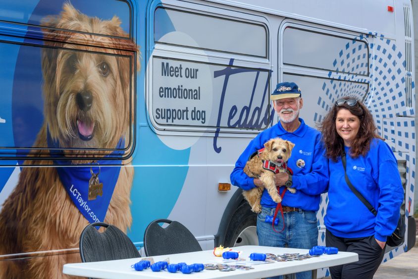 Of course, no Bark in the Park would be complete without our beloved office emotional support dog, Teddy. This year, Teddy proudly served as Marshall of the Pooch Parade, leading the way alongside our CEO, Jillian Taylor-Mancusi.