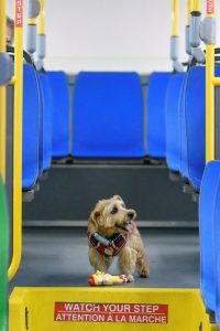 Before the game, fans also had the chance to visit the famous “Teddy bus” — the Winnipeg city bus wrapped with Teddy’s smiling face that circulates year-round. Parked in the Courtyard, it became a popular photo spot before the rain set in. When the weather turned, Teddy charmed everyone from inside the bus, happily waiting for the game to begin. Later, he greeted fans at the concourse table, giving plenty of opportunities for a wag and a smile.